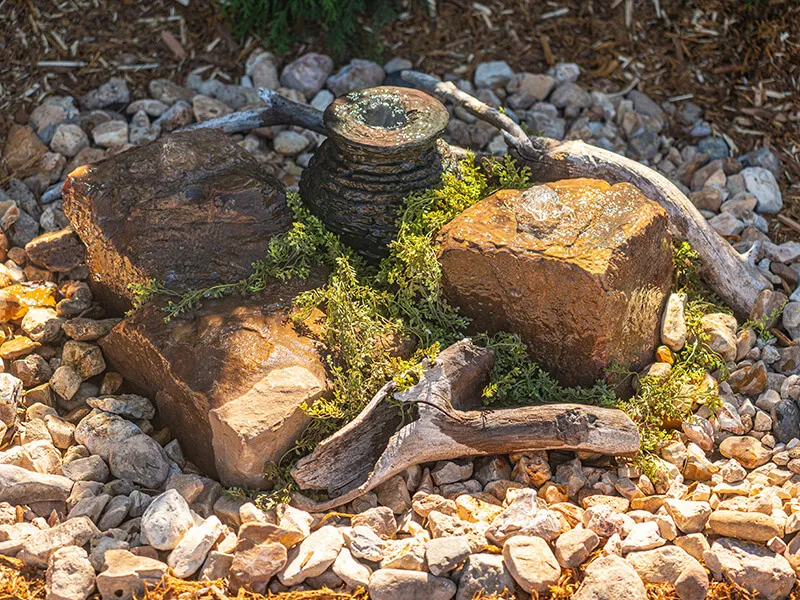 Every Signature Bubbling Boulder is custom-built by our team of skilled artists at our facility. We hand-select each boulder from the quarry to ensure the perfect fit and natural appeal. To enhance the design, we incorporate driftwood sourced from across Oklahoma, carefully cut to complement each boulder’s unique shape. Finally, we add our signature greenery to introduce the perfect balance of softness and color, making each bubbling boulder a truly one-of-a-kind water feature.